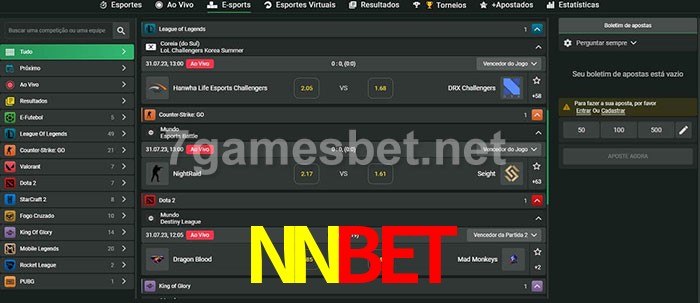 A aposta NNbet oferece aos jogadores a experiência mais conveniente de apostas em eSports!